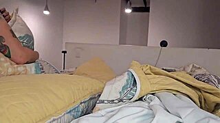 joy hermanastra rubs her wet pussy hard with banana till she squirts soaking the bed athletic solo fun