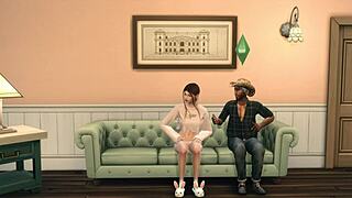 In a hospital room, a cute brunette teen surprises her grandpa doctor with bold moves.