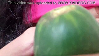 heat makes her spread legs wide no panties shaved big pussy takes wet cucumber deep squirts