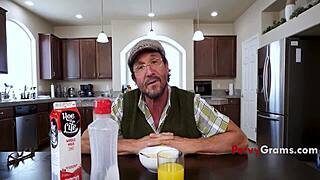 Busty Mature Lady Rides Young Stud's Big Cock in Kitchen