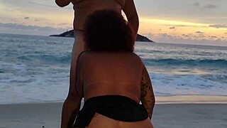 hotwife strips on beach for muscular stud's creampie pounding outdoors