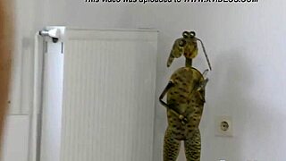 punished sub uses dildo in garage under domination