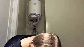 Blonde shemale teen performs intense blowjob on webcam