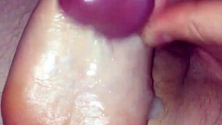 Girlfriend's soft feet get footjob cumshot jerkoff close-up