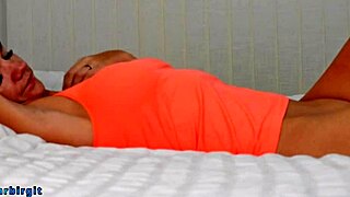 cute blonde milf fingers shaved pussy moans loud with bullet vibrator on bed