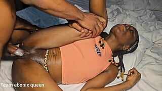 Abuja ebony slut bent over for big black cock creaming her tight pussy