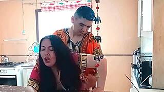 Amateur BBW Colombian milf gets bent over kitchen counter for hard anal assfucking doggystyle with massive creampie