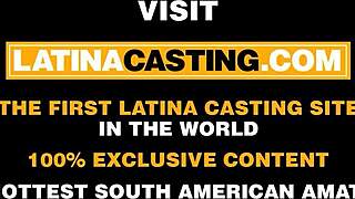 Shy afro latina participates in fake casting interview.