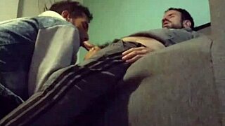 Chubby bearded bear takes it hard on the sofa