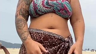 "Fiquei peladinha na praia na frente do cara ele ficou de pau duro e eu dei uma pegadinha no pau"