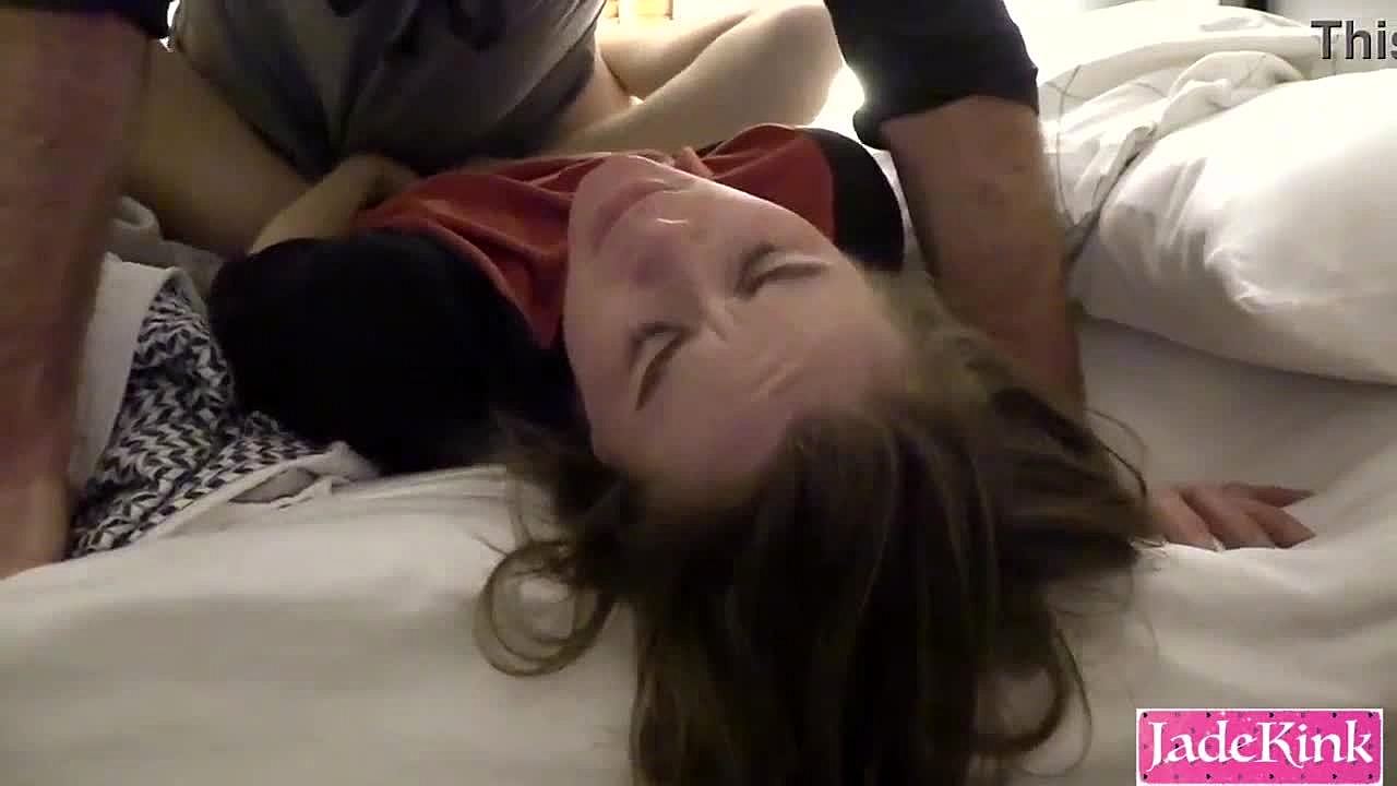 Pervy babysitter teen brunette gets face fucked hard on bed